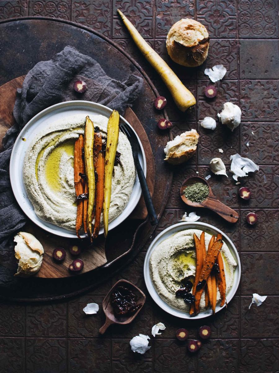 Ein ganz einfaches Rezept für im Ofen geröstete Rote Bete und Karotten. Es funktioniert auch mit jedem anderen Wurzelgemüse. Serviert mit einem leckeren Kräuter-Joghurt. Einfach, gesund und lecker!