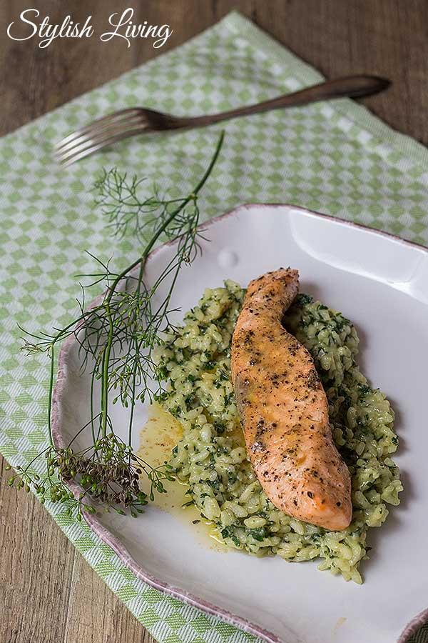 Voriges Jahr habe ich in Italien ein Risotto mit Meeresfrüchten und Pesto gegessen. Und ich habe mir vorgenommen, dieses Risotto selber zu kochen. Ein Rezept hatte ich nicht, aber so schwer konnte es nicht sein