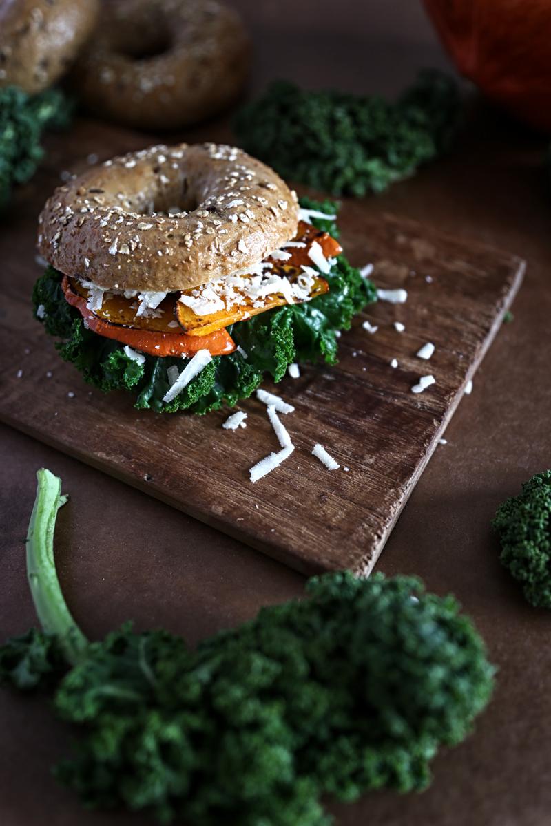 Ein herbstlicher Bagel belegt mit allem was das Herz begehrt. Schön bunt und auch einfach mal ohne Fleisch. Eine leichte Mahlzeit-auch für Zwischendurch!