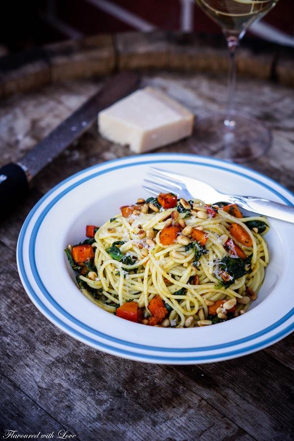 Kürbis, Champignons & Spinat: Das Beste was der Herbst zu bieten hat, vereint in einem einfachen Rezept! Noch besser wird es, wenn alle Zutaten in einer cremigen Pastasauce mit Kürbis zusammenkommen.