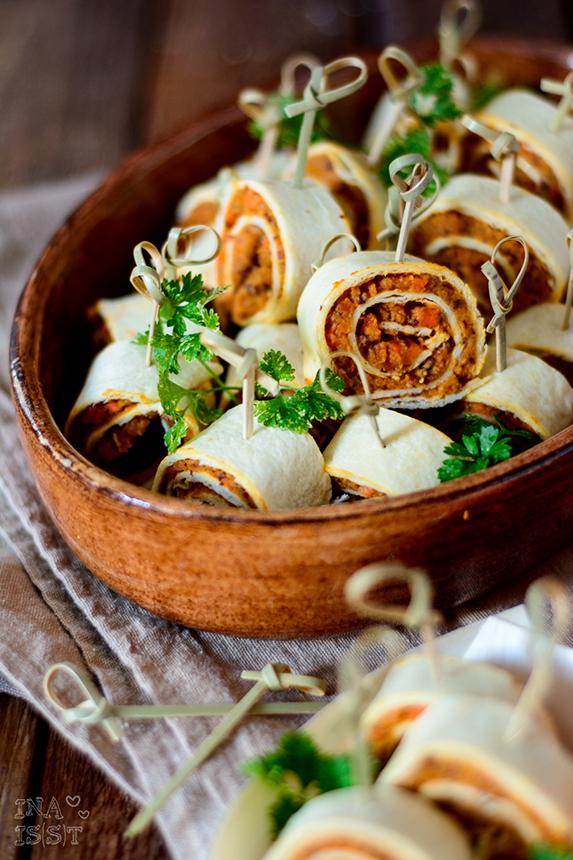 Der Teig kann gleich verwendet werden und braucht kurze Zeit in der Pfanne. Da ich dann nicht mit zwei Pfannen hantieren möchte, habe ich dazu ein paar Patties gemacht, die einfach im Ofen gegart werden.