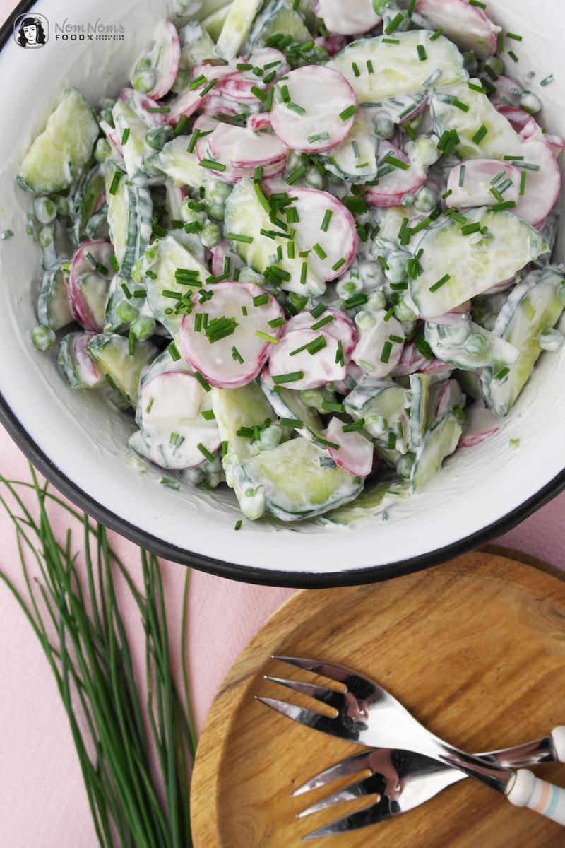 Eigenwerbung / Ein knackig frischer Radieschen-Gurken-Erbsen-Salat mit cremig-frischem Sour-Cream-Dressing. Perfekt für heiße Tage, zum Grillen oder einfach so.