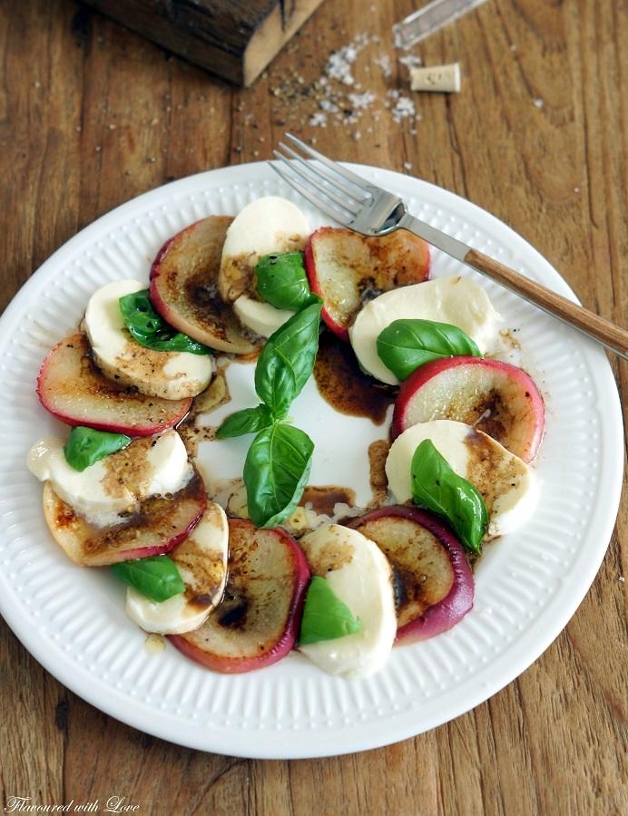 Sommer-Salat: Mango-Pfirsich-Mozzarella-Salat mit Pfeffer und Basilikum-Dressing