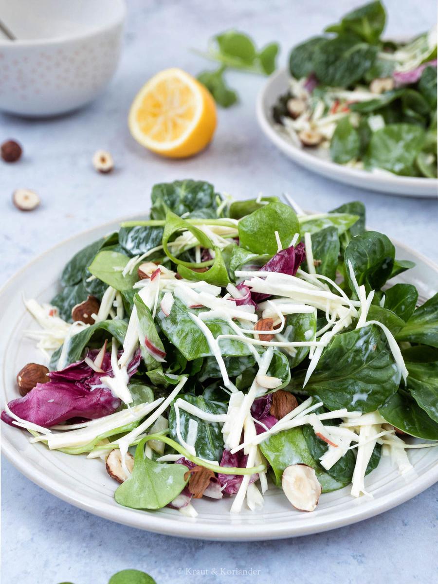 Ein saisonales Rezept für einen Salat aus frischen Wintersalatsorten mit heimischem Wurzelgemüse und Apfel in einem herrlich, cremigen Joghurt-Dressing.