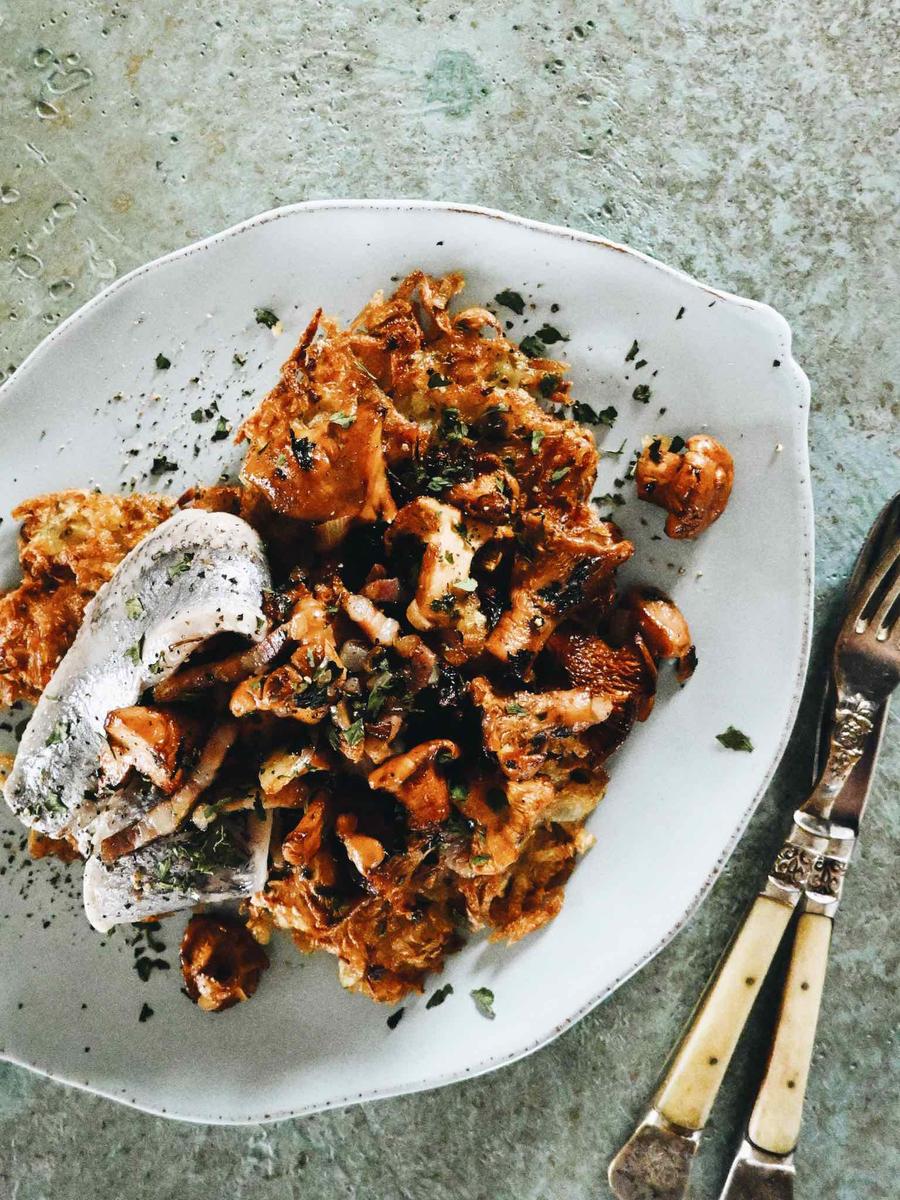 Dieses nordische, spannende Rezept präsentiert den Matjes auf leckeren Kartoffelpuffern aus frischer Ernte zusammen mit spätsommerlichen Pfifferlingen. Mal eine andere Kombination!