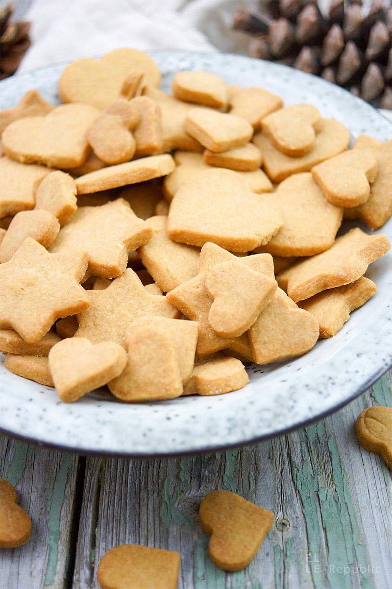 Die gesündere Lösung für Naschkatzen: Dinkel-Butterkekse mit Vollrohrzucker. Auf jeden Fall besser als Weihnachtsplätzchen mit raffiniertem Zucker und genauso lecker. Der Kindertest sagt: Daumen hoch!