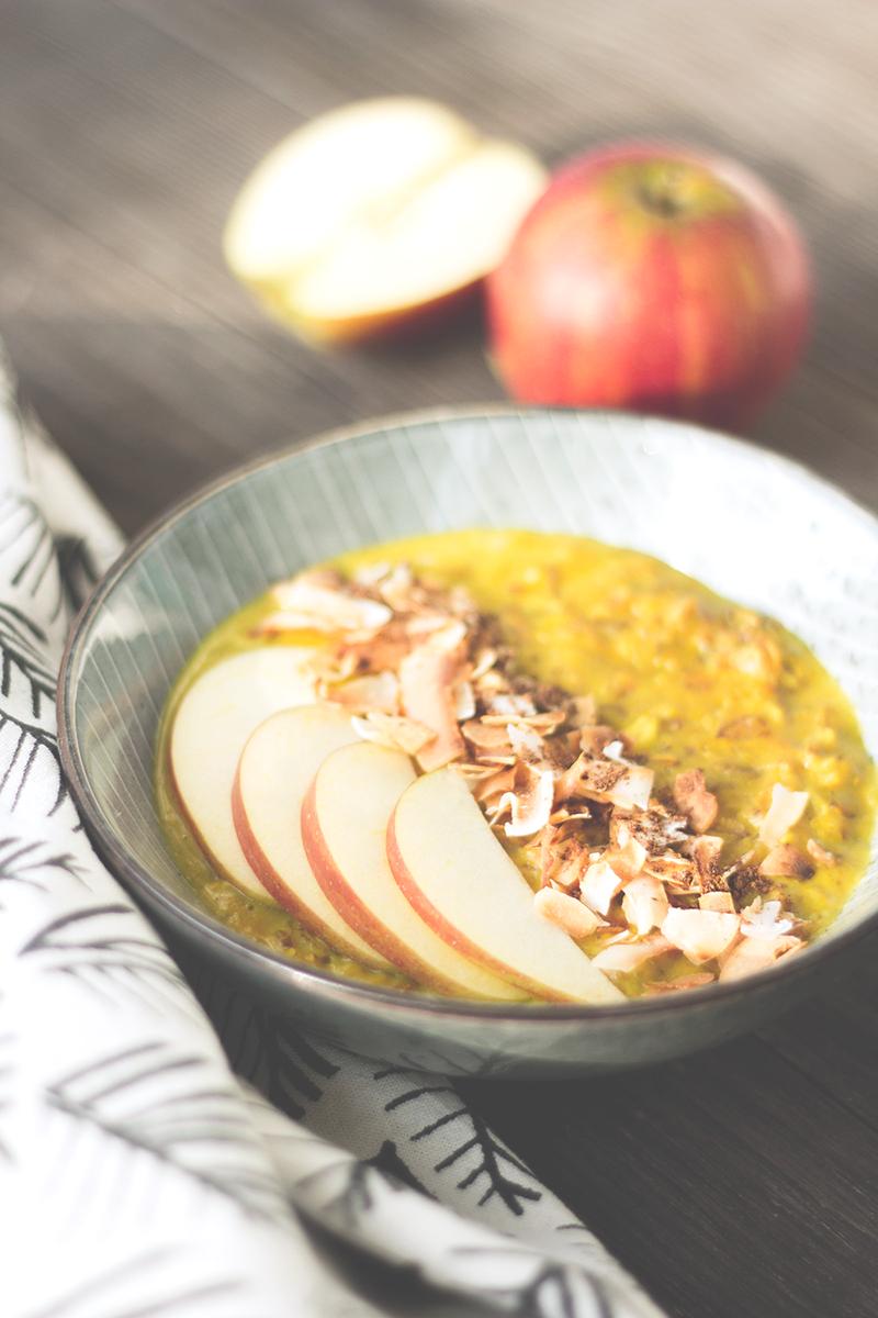 Wer goldene Milch als Getränk nicht mag, wird mit der Porridge- bzw. Haferbreivariante sicher glücklich.