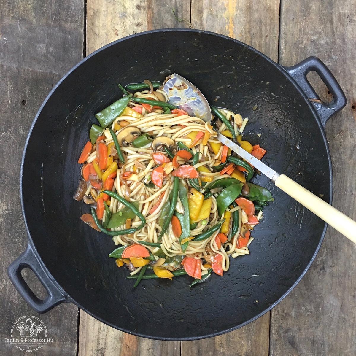 Gebratene Nudeln auf japanisch: Einfaches Rezept für schnelle Yaki Udon aus der Pfanne mit viel Gemüse. Ideal für schnelle Feierabendküche, denn es braucht nur 20 Minuten.