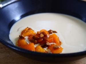 Hier mal eine etwas andere Variante der Pannacotta, wie wir sie beim Italiener um die Ecke immer essen. Die Sahne/Milch-Mischung wird mit leicht geröstetem Wiesenheu aromatisiert.