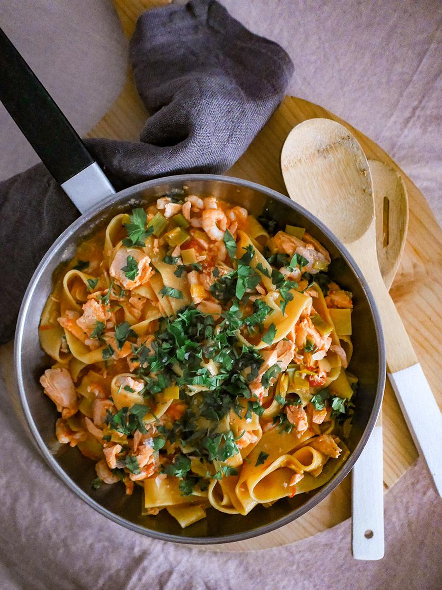 Wenn in Norwegen Lachs auf Pasta trifft, können Eismeerkrabben nicht weit sein! Das perfekte Trio, vereint in dieser Lachs-Pasta, ist aber nicht nur super lecker, sondern auch ganz schnell zubereitet.