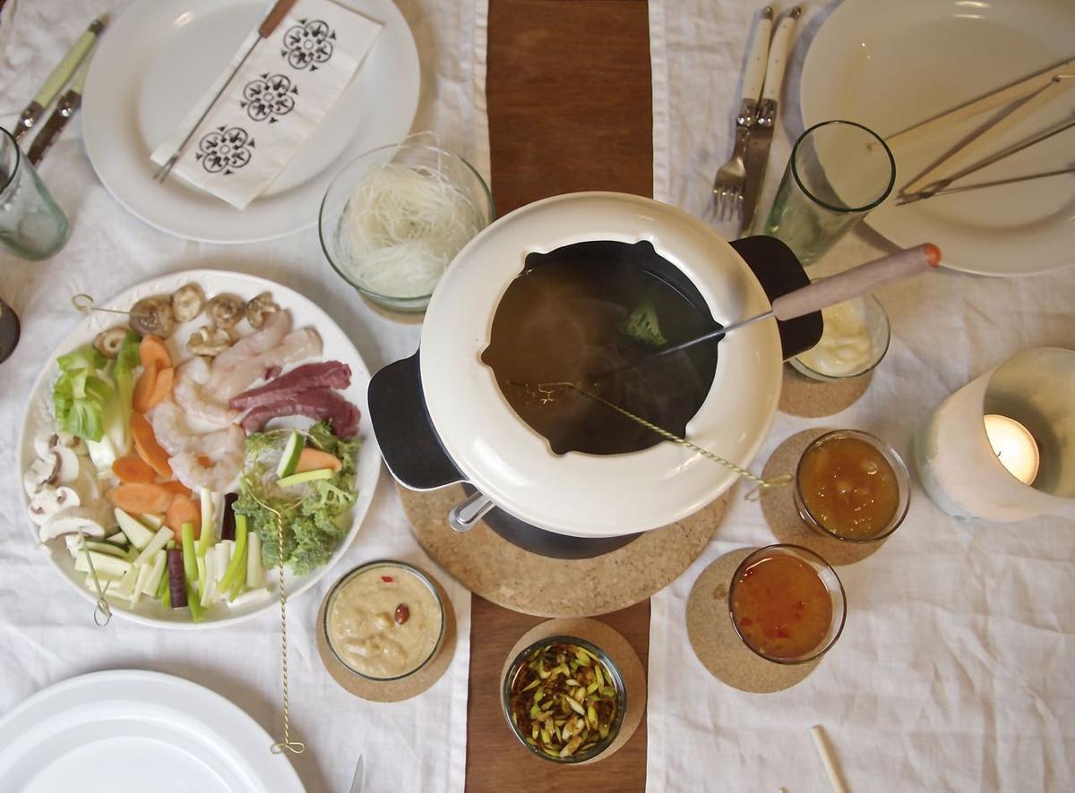 Ein Hot Pot ist ein asiatisches Fondue auch bekannt als chinesisches Fondue, Fondue Chinoise, Feuertopf oder auch Fondue nach vietnamesischer Art. Die Brühe habe ich aus frischem Gemüse gekocht.