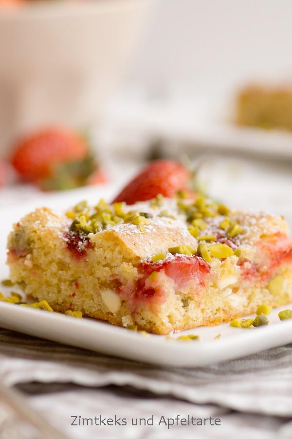 Jetzt ist die perfekte Zeit für leckeren Rhabarber-Kuchen gekommen. Hier gibt es heute deswegen eine neue Rezeptidee von mir: saftige Rhabarber-Blondies, die mit weißer Schokolade und knackigen Pistazien gebacken werden. Der Rhabarber wandert püriert und ohne Stückchen in die Blondies. So sorgt er nicht nur für einen hübschen Swirl, sondern schmeckt auch den Menschen, die sonst nicht die größten Rhabarber-Fans sind.