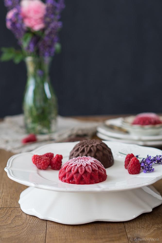 Schnell gemachte Eisblumen aus erfrischendem Himbeer-Sorbet und knackiger dunkler Schokolade. Genau richtig für den Sommer und ohne Eismaschine herzustellen.