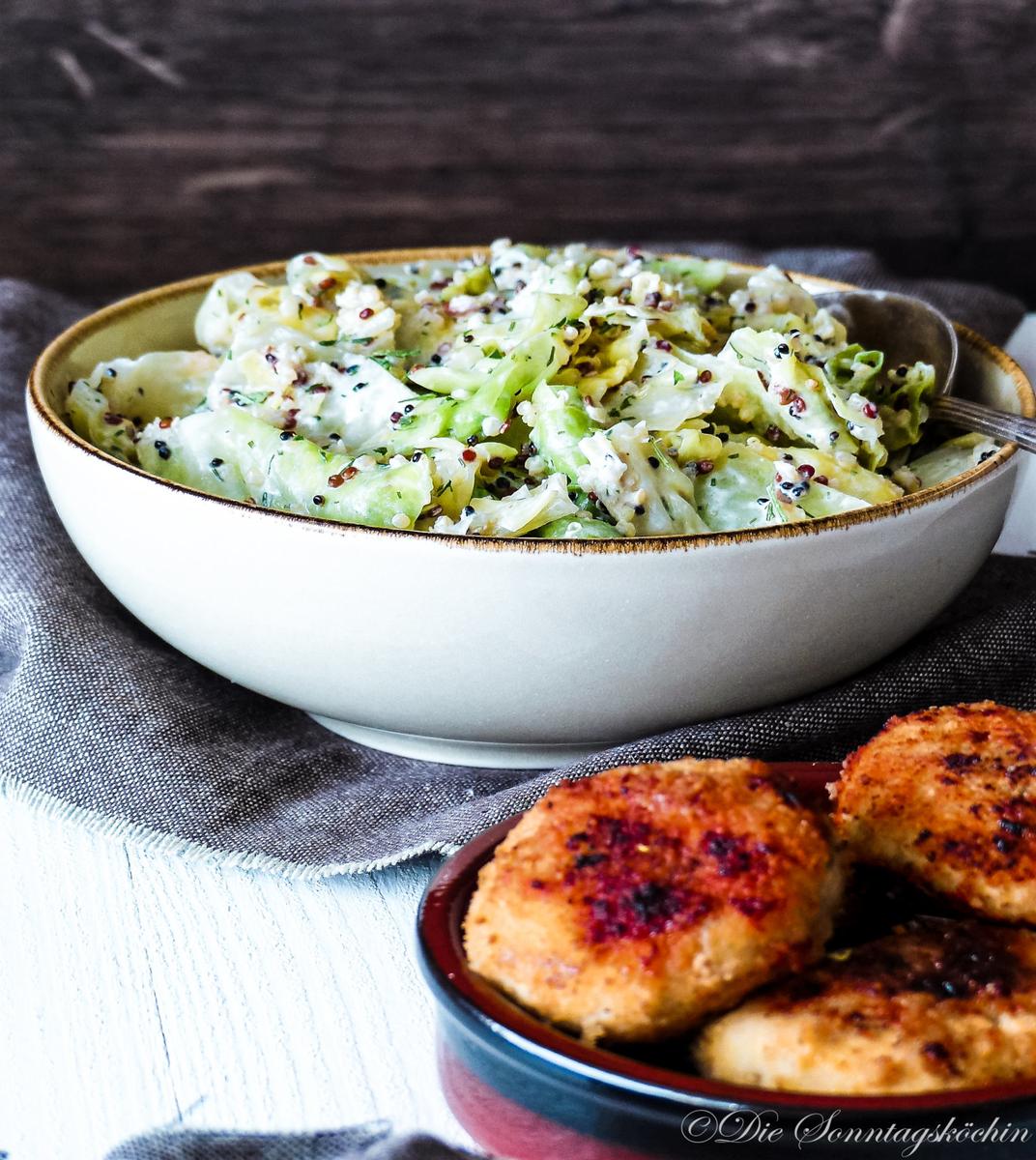 Mit einem lauwarmen Spitzkohl-Quinoasalat mit saurer Sahne und Dill bekommt man einen leichten Salat mit viel Geschmack. Frisch und einfach zubereitet, ist es das perfekte leichte Mittagessen.