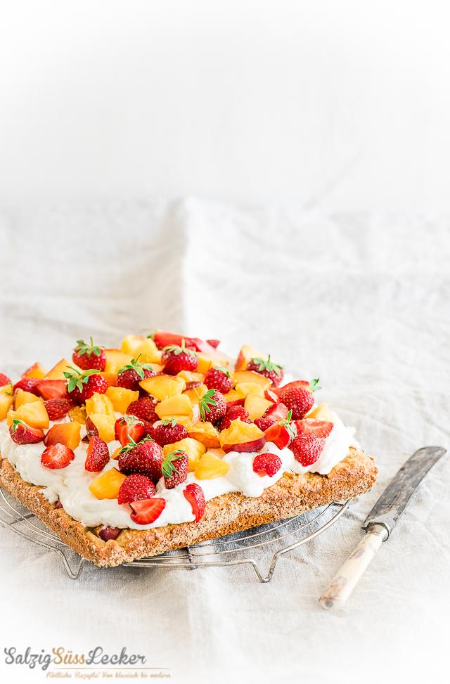 Die Sahne wird daher durch Magerquark und Joghurt ersetzt. Dadurch wird der Kuchen auch viel frischer.