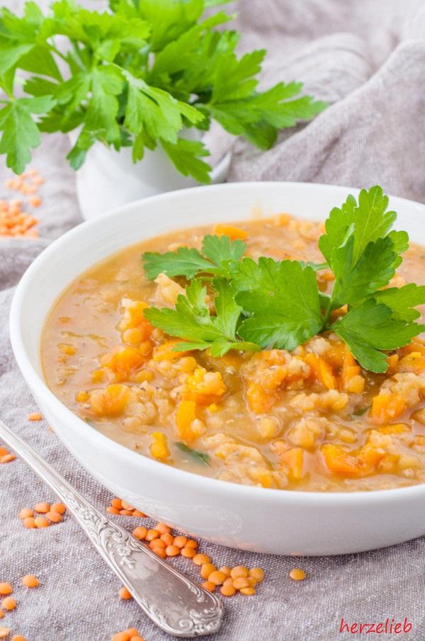 Diese orientalische Linsensuppe mit Ras el Hanout & Kreuzkümmel ist eine meiner Suppenfavoriten. Die raffinierten Zutaten erzeugen eine Geschmacksexplosion!