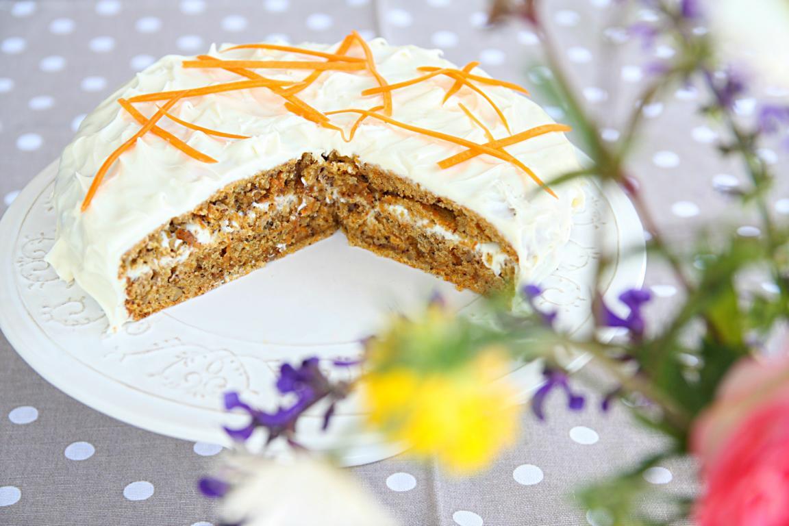 Saftiger Chia-Cake mit Karotte und Kürbis dazu ein Sauerrahm-Topping