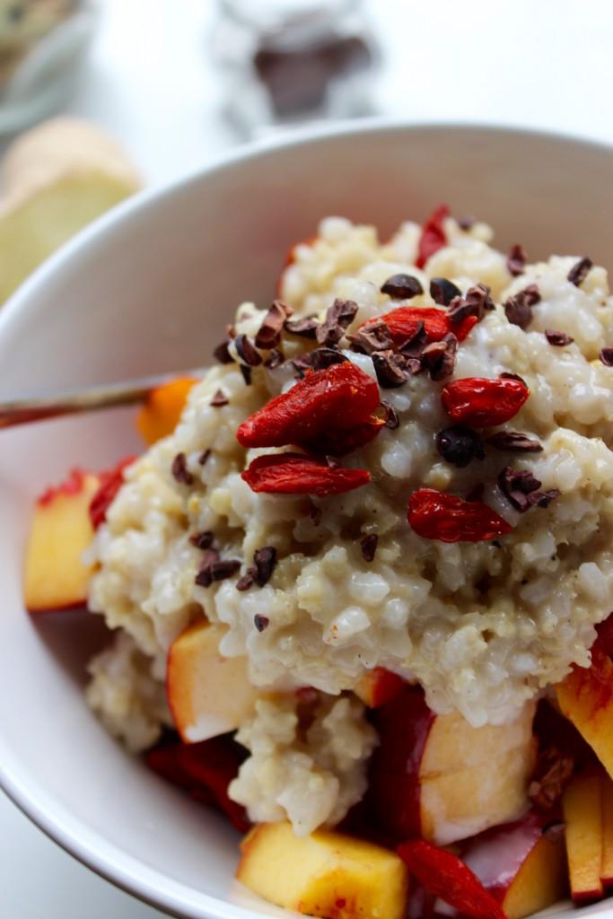 Blumenkohl wird hier fein zerschreddert, sodass er die Konsistenz von Reis erhält. Nach dem Blanchieren wird der low Carb Reis mit gekochten, roten Linsen und allerlei Gewürzen wie Curry und Chilli abgeschmeckt