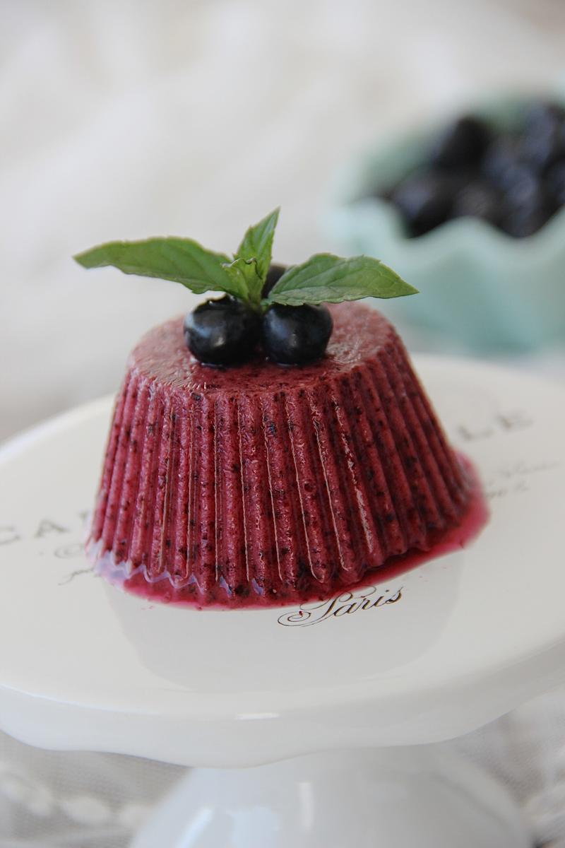 Luftiger Biskuit, einmal hell und einmal dunkel, dazwischen eine Puddingschicht und obendrauf eine dicke Schicht Blaubeer-Mousse mit Schokoraspeln. Den Abschluss bildet ein Heidelbeer-Spiegel!