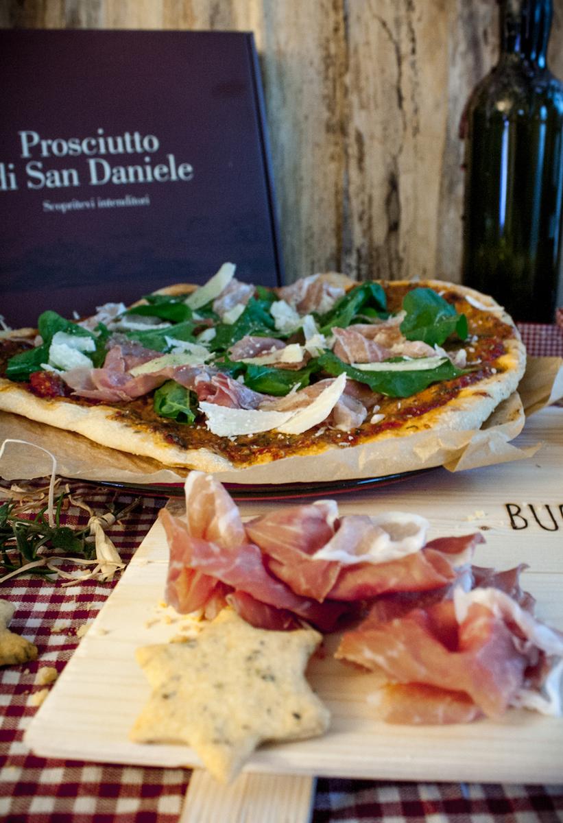 Knuspriger Pizzaboden trifft auf zwei echte italienische Klassiker - Prosciutto di San Daniele und Grana Padano - mehr Italien auf einer Pizza geht kaum.