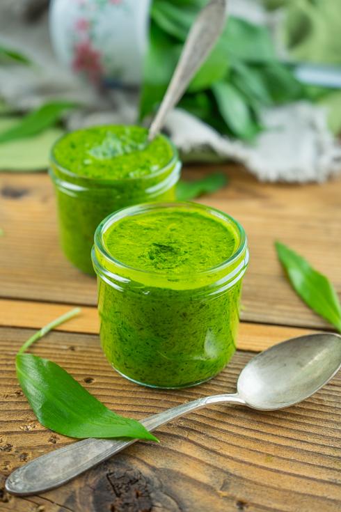 Bärlauch, auch Waldknoblauch genannt, ist eine tolle Kräuterpflanze. Ich liebe den etwas sanfteren Knoblauchgeschmack und dazu noch diese grüne Farbe… Was ich leider gar nicht an Bärlauch mag, ist, dass man ihn sehr schnell weiterverarbeiten muss. Er lässt sich leider auch nicht einfrieren, da er so sein ganzes Aroma verliert. Für uns heißt das dann immer zu Pesto weiterzuverarbeiten. Ich mache es quasi wie mein Standardpesto, nur lasse ich das Basilikum und den Knoblauch weg. Viel Spaß beim schnellen Nachkochen, solange der Bärlauch noch da ist!