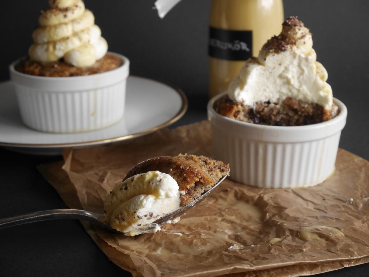 Saftiger Schokolade-Nuss-Kuchen mit einer feinen Eierlikör-Sahne-Haube: Diese wunderbaren Cupcakes sind von der klassischen Eierlikör-Torte inspiriert.