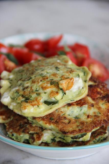 Diese Zucchini-Feta-Küchlein sind ein herrlich einfaches und schnelles Sommergericht von Donna Hay. Zu den lecker-krossen Puffern gibt es zitronig-frischen Tomatensalat mit viel Basilikum.