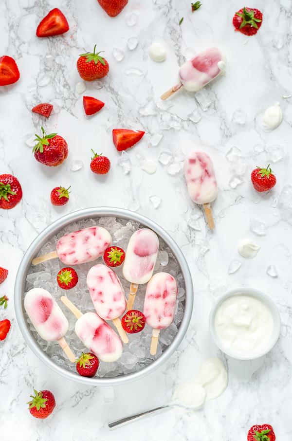 Selbstgemachtes Eis am Stiel: Erdbeer-Zitronen-Buttermilch-Eis