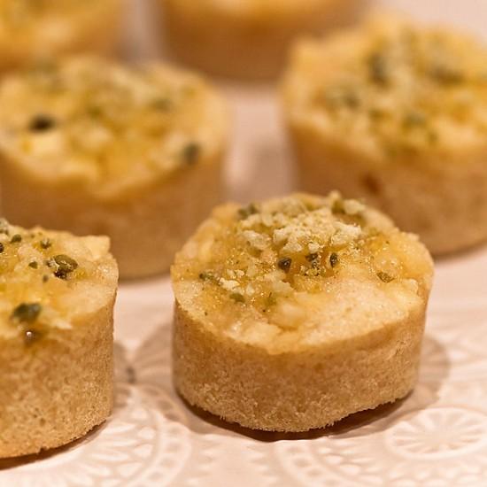 Financiers mit karamellisierten Äpfeln und Pistazienkrokant