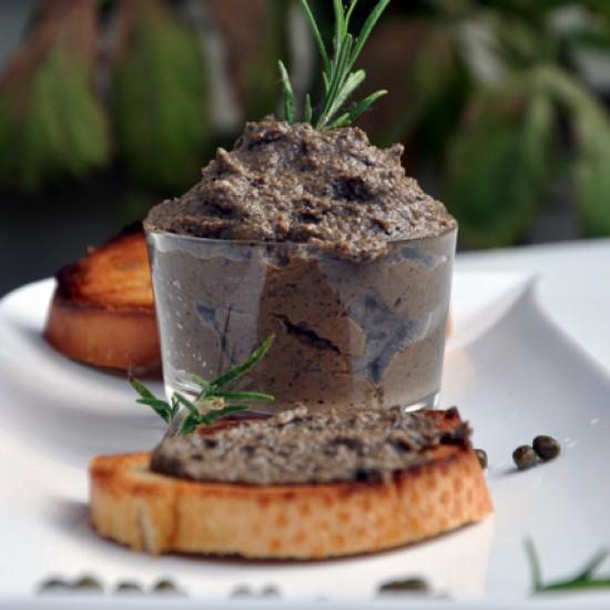 Tapenade aus grünen Oliven, Zucchini und Basilikum
