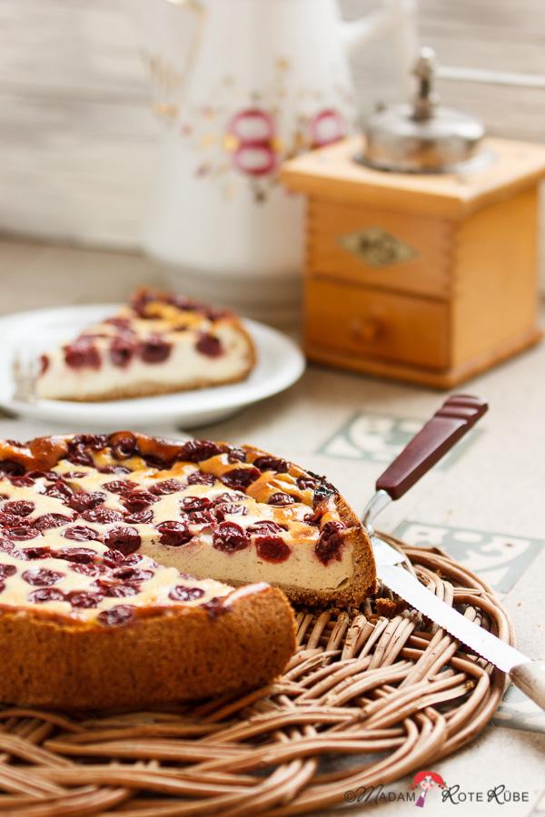 Ja, wir feiern unsere Lieblings-Kirschsaison mit einem Clafoutis und deshalb gibt es noch einen Amarettoschwips für die Kirschen und einen großen Klecks Vanille-Schlagsahne obenauf.