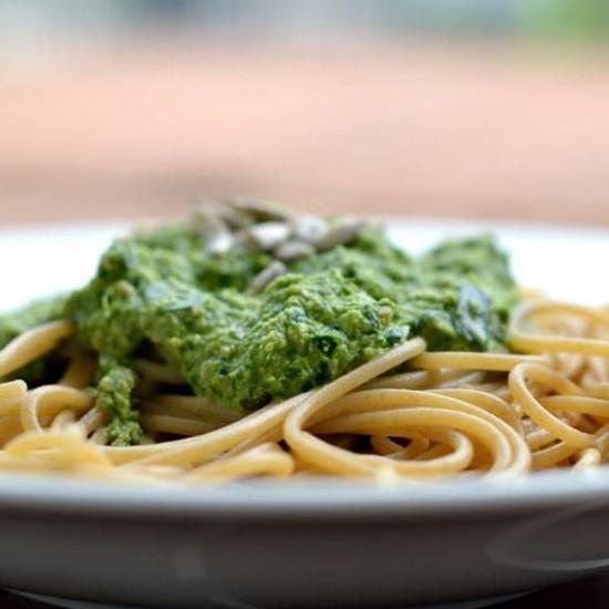 Schnell eine Zucchini geraspelt mit Meersalz und frisch gemahlenem Pfeffer gewürzt, bestreut mit gerösteten Saaten, ob Kürbiskerne oder Sonnenblumenkernen. Parallel wird ein Ei in der Pfanne gebraten.