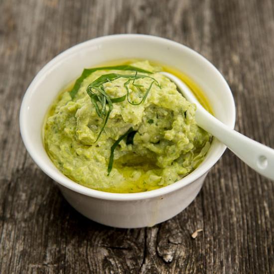 Hummus mit grünem Spargel und Bärlauch