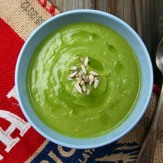 Blumenkohlsuppe mit Zitrone und knusprigen Grünkohlchips