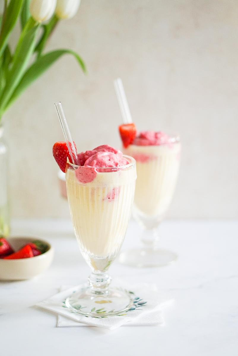 Statt der Buttermilch kannst du natürlich auch normale Milch oder einen Haferdrink nehmen. Die Erdbeerhaube geht fast wie ein Eis durch á la #nicecream