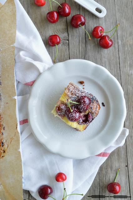 Die Kirschsaison wurde bei uns also mit einem rustikalen Käsekuchen eingeleitet. Das besondere an dem Kuchen ist, dass der Teig des Bodens relativ weich ist und beim Backen richtig schön aufgeht und fluffig ..