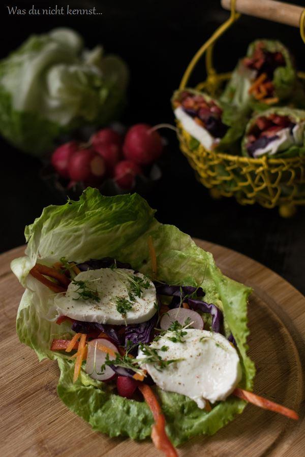 Nach den Feiertagen möchte man gerne etwas leichtes essen. Wieso nicht einfach mal Wraps machen? Allerdings nicht mit Weizentortillas, sondern mit Salatblättern. Salat-Wraps.