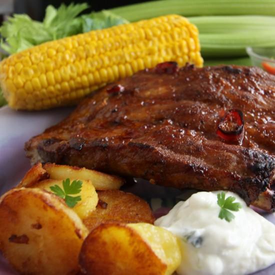 Schnell und einfach zubereitete Spareribs mit einer selbstgemachten BBQ Sauce und Chimichurri.