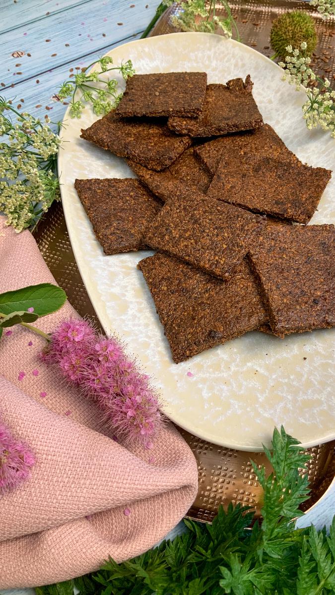 Dieses gesunde Leinsamen Cracker Rezept sorgt für veganen Knusperspaß: Leckere low carb Cracker ohne Mehl, die du im Thermomix oder Standmixer zubereiten kannst.