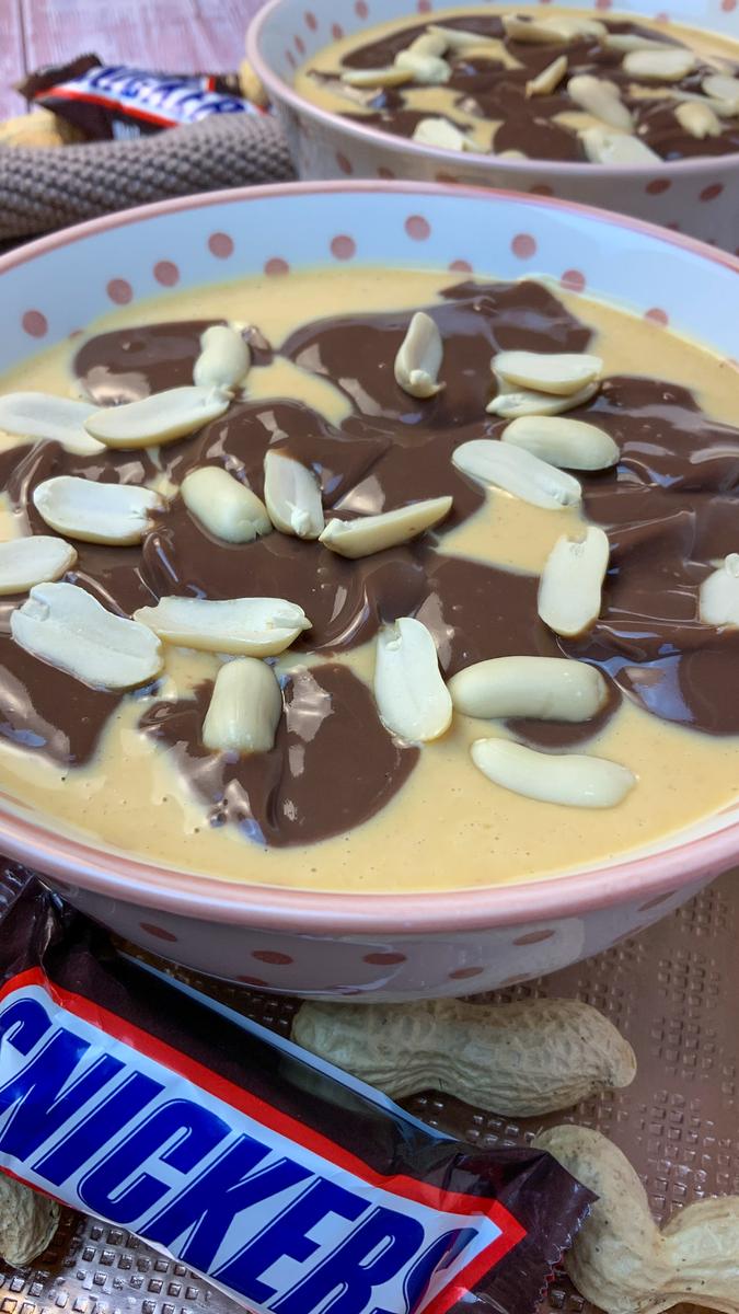 Snickers Bowl ohne Zucker: High Protein Pudding im Snickers-Style mit Quark, light Peanut Creme und Chunky Flavour von More Nutrition als proteinreiches Frühstück oder low carb Dessert. ?
